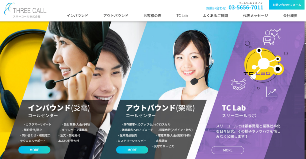 THREE CALL(スリーコール)は、コールセンターサービスに特化したカスタマーサポート代行サービスです。