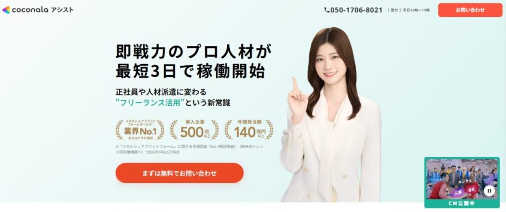 契約前から稼働開始後まで、ココナラアシストの専任担当者による手厚いフォローが受けられます。