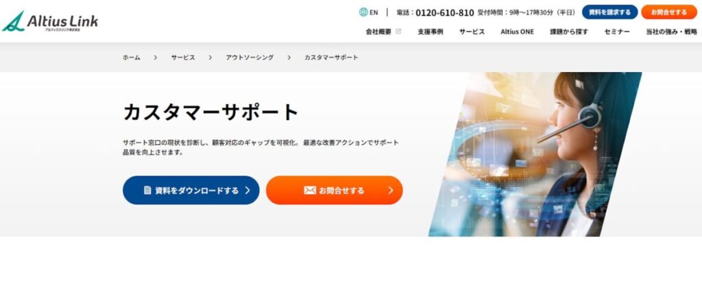 アルティウスリンクは、全国に拠点を持つ大手コンタクトセンターが運営するカスタマーサポート代行サービスです。AI技術と人の力(オペレーター)を融合させたコンタクトセンター業務に特化しています。
