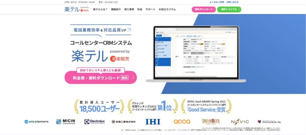 楽テルは、カスタマーサポートやヘルプデスク向けに提供されているクラウド型CRMです。CTIとスムーズに連携できるのが特徴で、着信が入ったときには顧客情報を自動で表示します。発信はCRMの操作画面からそのままできるため、上手く活用すれば顧客対応のスピードの向上が期待できるでしょう。