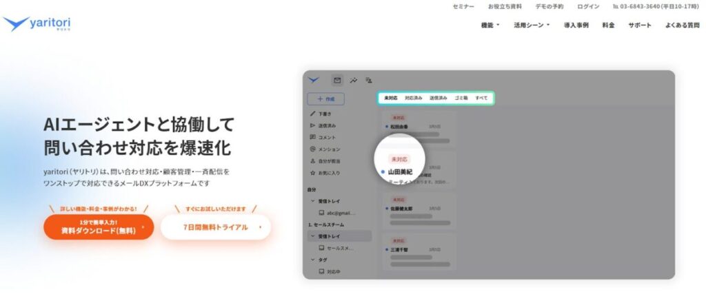 「yaritori」は、カスタマーサポートの対応状況を可視化し、AIエージェントによる効率化も可能なカスタマーサポートツールです。