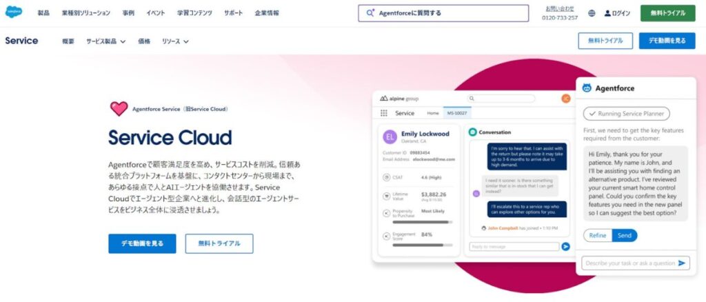 Service Cloud(サービスクラウド)は、多機能で柔軟性の高いカスタマーサポートツールです。AIを活用した高度な機能や、複数の窓口を統合したサポートで強みを発揮します。