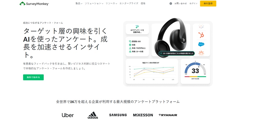 SurveyMonkeyは、世界的なセキュリティ基準を満たした安全なフォーム作成ツールです。自動返信メール機能はもちろん、アンケート結果に応じた条件分岐など、高度な自動化が可能です。