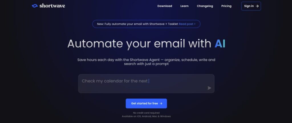 「Shortwave」は、AI機能を前面に押し出した次世代メールクライアントとして注目を集めています。メールの自動整理、優先度の判定、そしてAIによる返信生成まで、メール業務全体をAIで最適化する思想で設計されています。