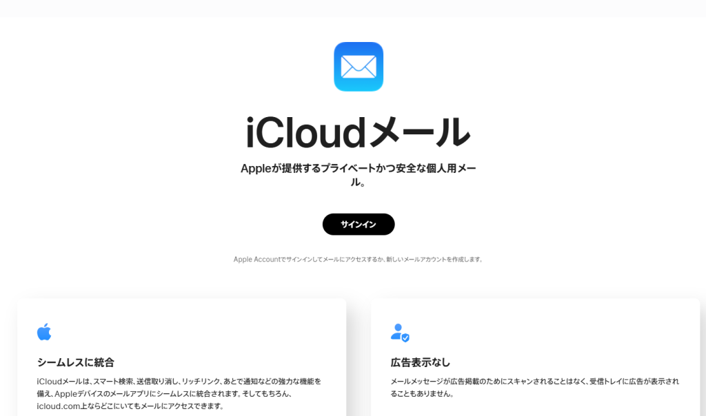 iCloudメールは、Apple社が提供するWebメールで、iPhoneやMacなどApple製品ユーザーに最適化されています。