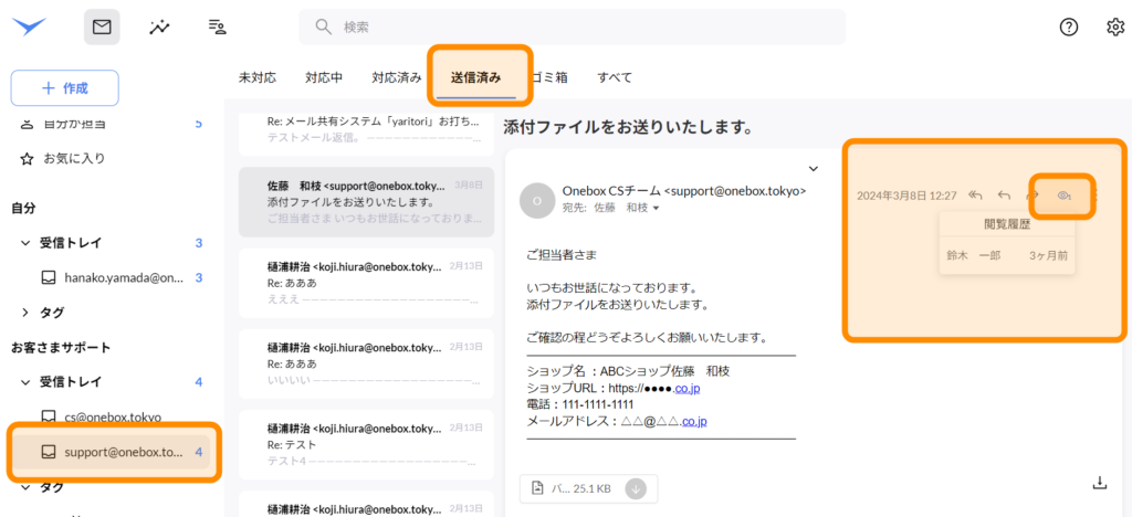 - 閲覧履歴が表示され、誰が・いつ開封したか、を確認できます。
