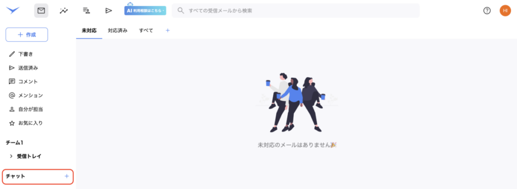 - 画面左側のサイドバーの一番下に「チャット」という項目があるので、そこをクリックするとチャット画面を開くことができます。