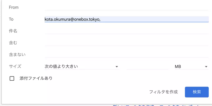 ③「To」に設定したい共有メールアドレスを入力し、「フィルタを作成」をクリック。