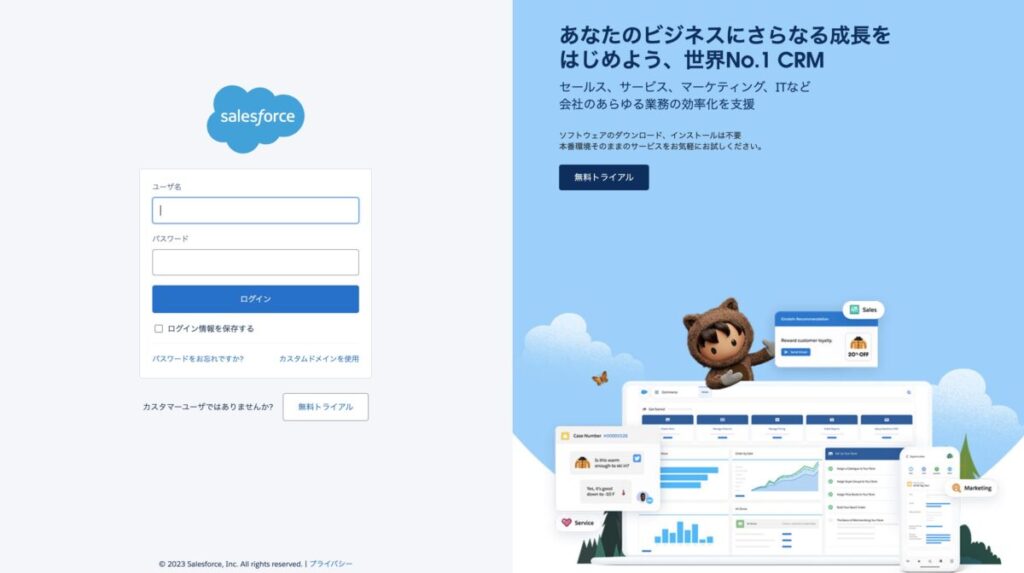 ④Salesforceのログイン画面に遷移するので、ご自身のSalesforceアカウントのIDとパスワードを入力 (下記画像参照)