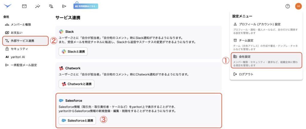 ③「Salesforceと連携」ボタンをクリック